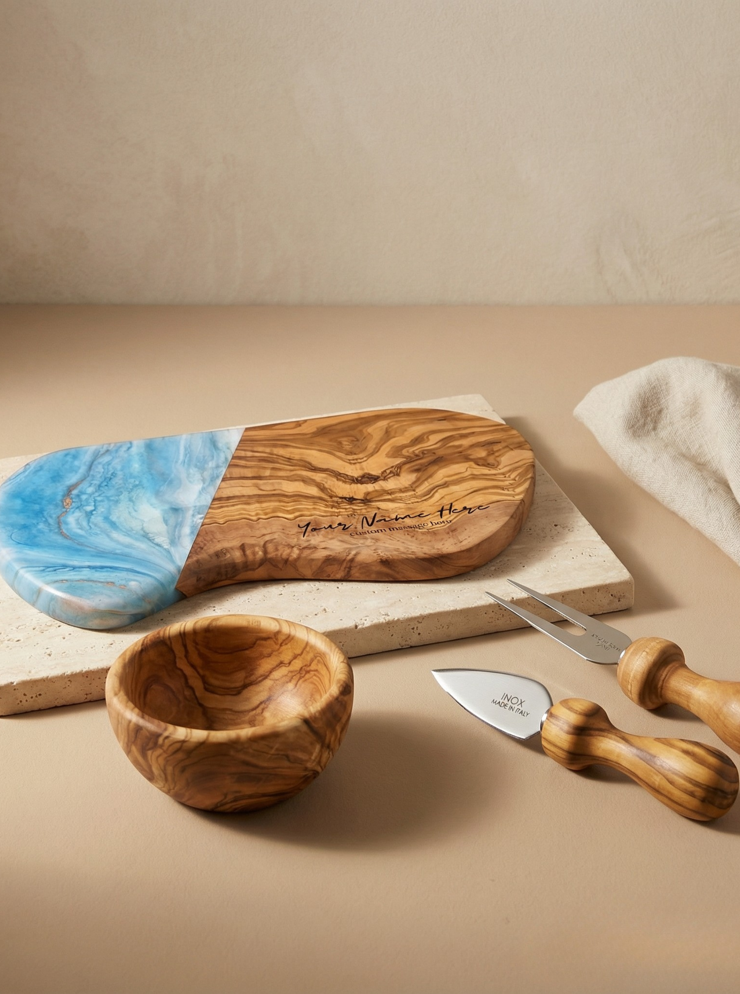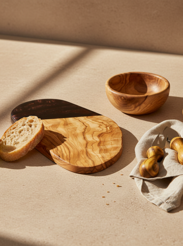 Elk stuk olijfhout is verantwoord geoogst en toont unieke nerfpatronen. Bekend om zijn duurzaamheid en natuurlijke schoonheid, is olijfhout perfect voor het maken van tijdloze serveerplanken, schalen, onderzetters en meer.