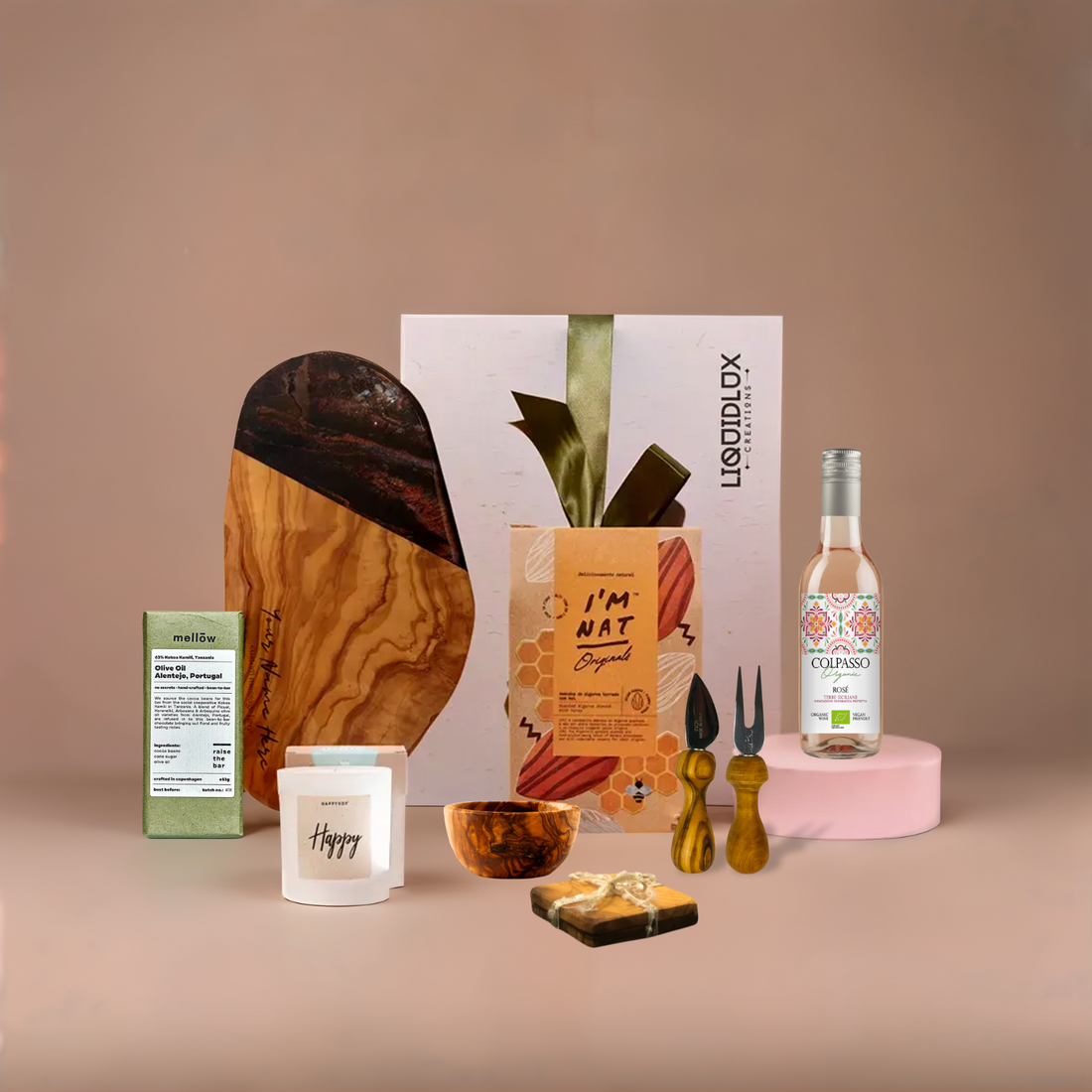 Exclusieve cadeaus met een tijdloze uitstraling. Handgemaakte olijfhouten planken, verfijnde accessoires en duurzame delicatessen – de ultieme luxe giftset.