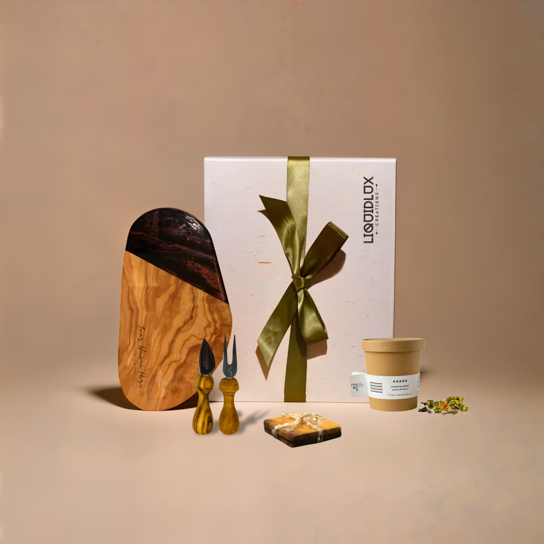 Ontdek onze exclusieve collectie luxe, duurzame cadeausets. Van elegante serveerplanken afgewerkt met met de hand gegoten epoxy tot verfijnde delicatessen, elk item is met zorg geselecteerd en met vakmanschap vervaardigd. Perfect voor elke gelegenheid!