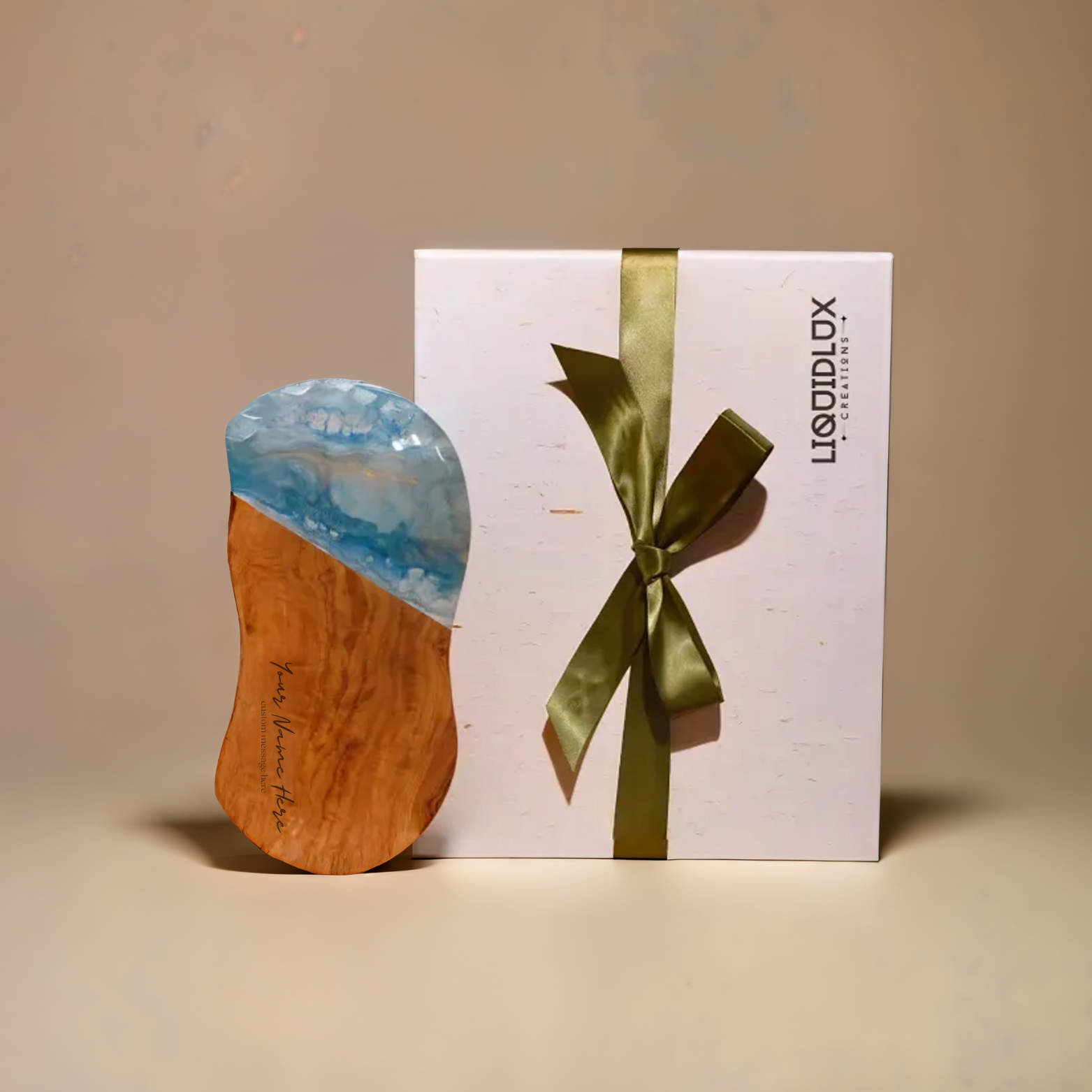 Belangrijk! Geen twee planken zijn exact hetzelfde – omdat de epoxy met de hand wordt gegoten en we de natuurlijke vorm en schoonheid van het olijfhout behouden, is elk stuk volkomen uniek. Dit maakt onze producten niet alleen functioneel, maar ook een kunstwerk op zich.